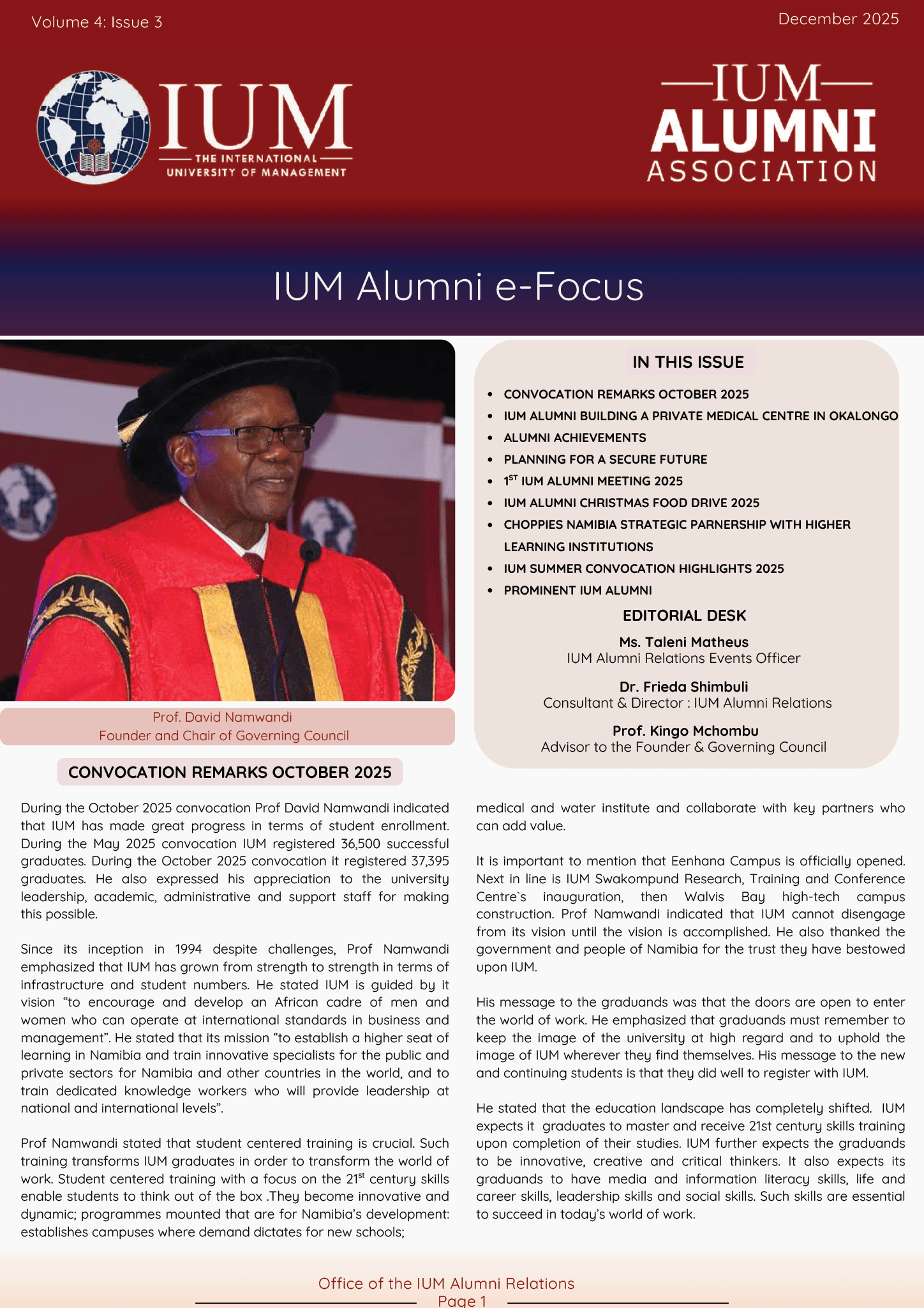 IUM Alumni e-Focus Newsletter Download our e-focus Newsletter here: December 2025: Volume 4, Issue 3 August 2025: Volume 4, Issue 2 May 2025: Volume 4, Issue 1 Dec 2024: Volume 3,Issue 3 Aug 2024: Volume 3,Issue 2 May 2024: Volume 3,Issue 1 November 2023: Volume 2, Issue 3 August 2023: Volume 2, Issue2 May 2023: Volume 2, Issue1 December 2022: Volume 1, Issue3 July 2022: Volume 1, Issue2 April 2022: Volume 1, Issue1